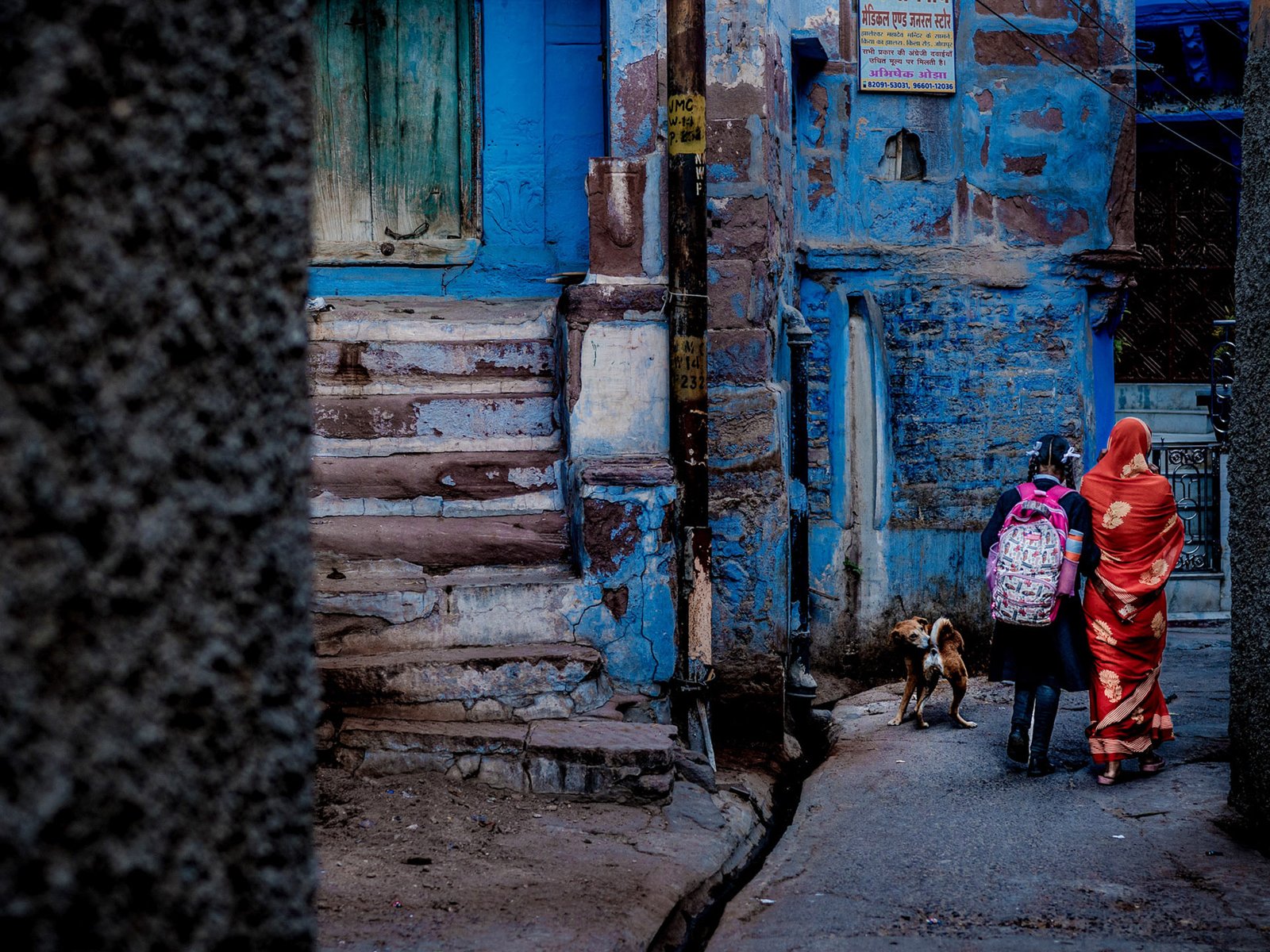 Nel pomeriggio passeggiata nel quartiere dei bramani, cammineremo per gli stretti vicoli pieni di vita tra case tinte di blu, che si faranno sempre più frequenti fino a che non ci troveremo immersi in questo colore.